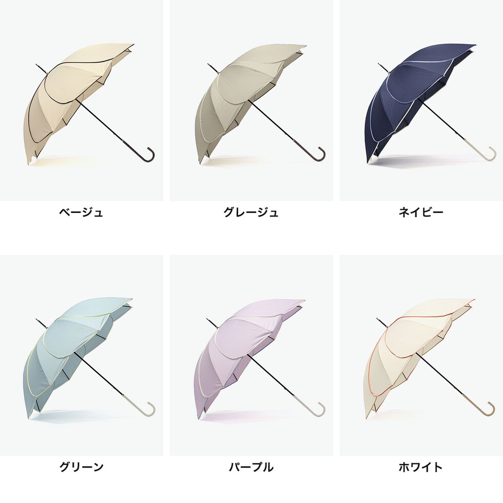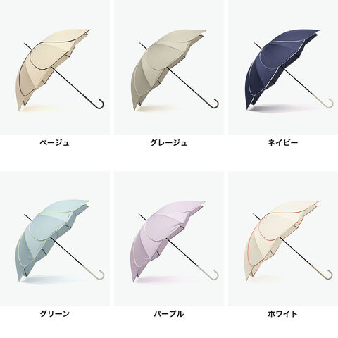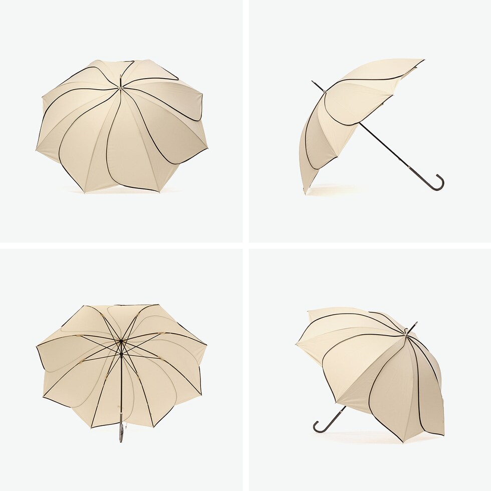 | 花びらのように広がる 上品で可憐な長傘 パッと傘を開くと花びらのようなシルエットが美しい長傘。晴雨兼用なので雨の日も紫外線が強い日も活躍!花弁が折り重なったようなデザインは、女性らしい可憐な印象を与えます。 |