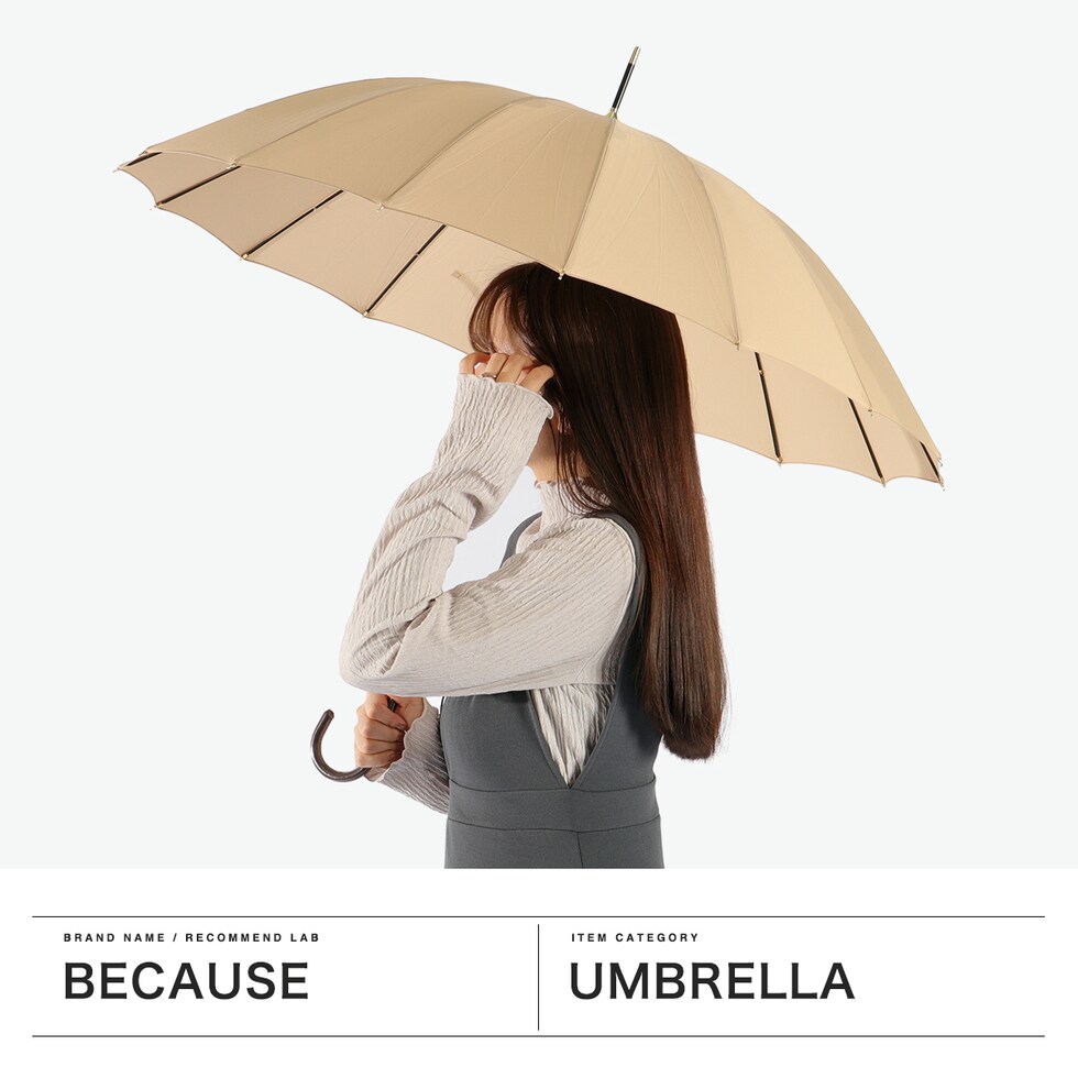 because 傘 レディース かさ 雨傘 日傘 長傘 ビコーズ 軽い 軽量 ブランド 晴雨兼用 大きめ 手動 手開き式 手開き おしゃれ 53 53センチ 53cm 無地 16本骨 16本 UVカット 16フレーム プレーンカラー B-134416
