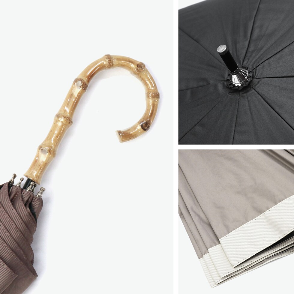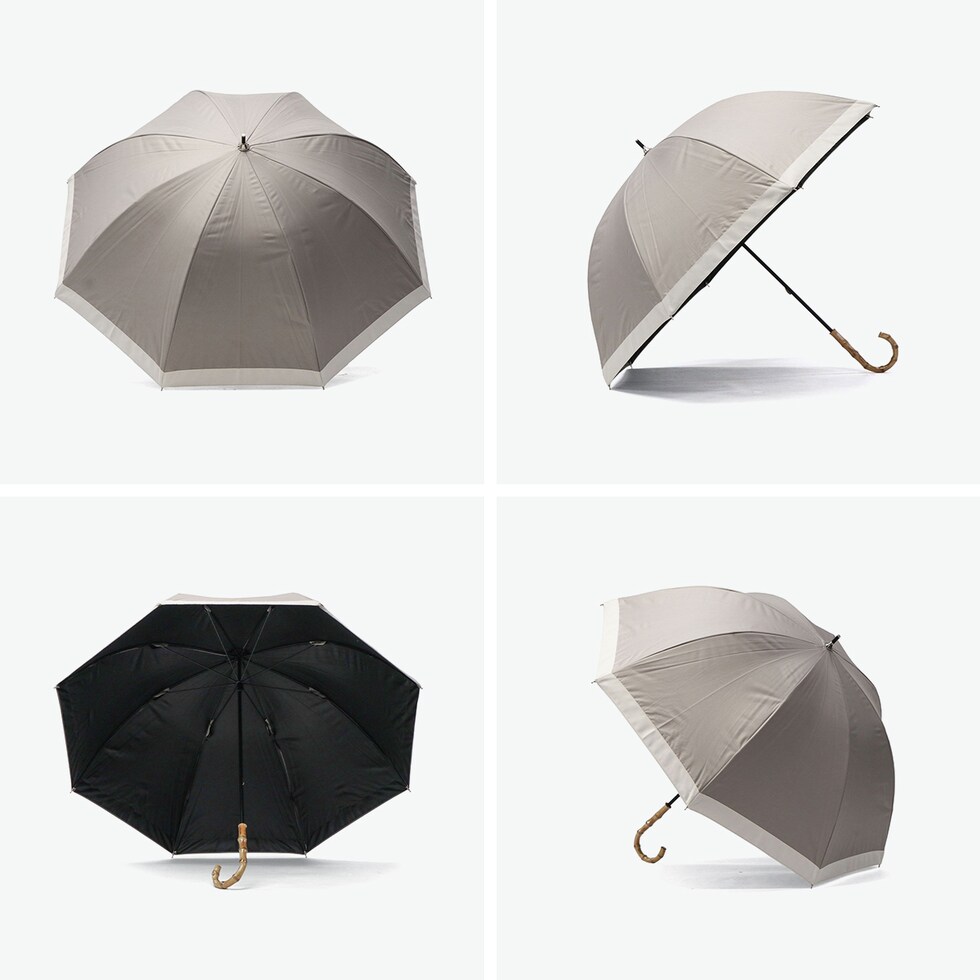 大人の為の完全遮光傘 グログランテープと高級感のあるバンブーハンドルが上品さを演出してくれる晴雨兼用傘です。UVカット率100%の完全遮光生地を使用し、裏面にはPUコーティング加工を施す事で100%の遮光率を実現。ドーム型の大きめサイズで広範囲をしっかりカバーし、安心してお出かけできます。デザインと機能性を兼ね備えた1本で、晴れの日も雨の日もエレガントに彩ります。 |