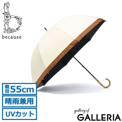 because 傘 レディース おしゃれ 55cm ビコーズ 長傘 日傘 ブランド 晴雨兼用 大人 大人女子 軽量 UVカット 完全遮光 遮熱 紫外線対策 かわいい バンブー バイカラー 裏面黒 PUグログラン ラージ B-958312
