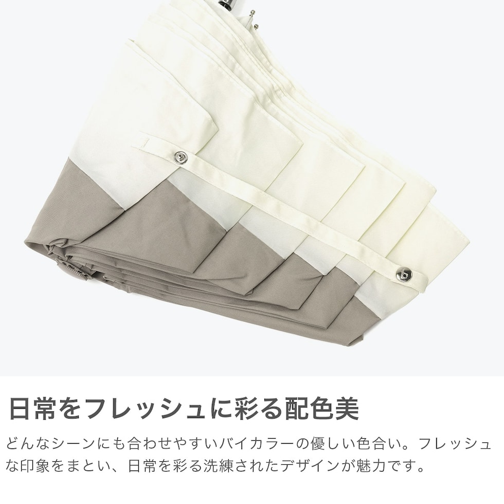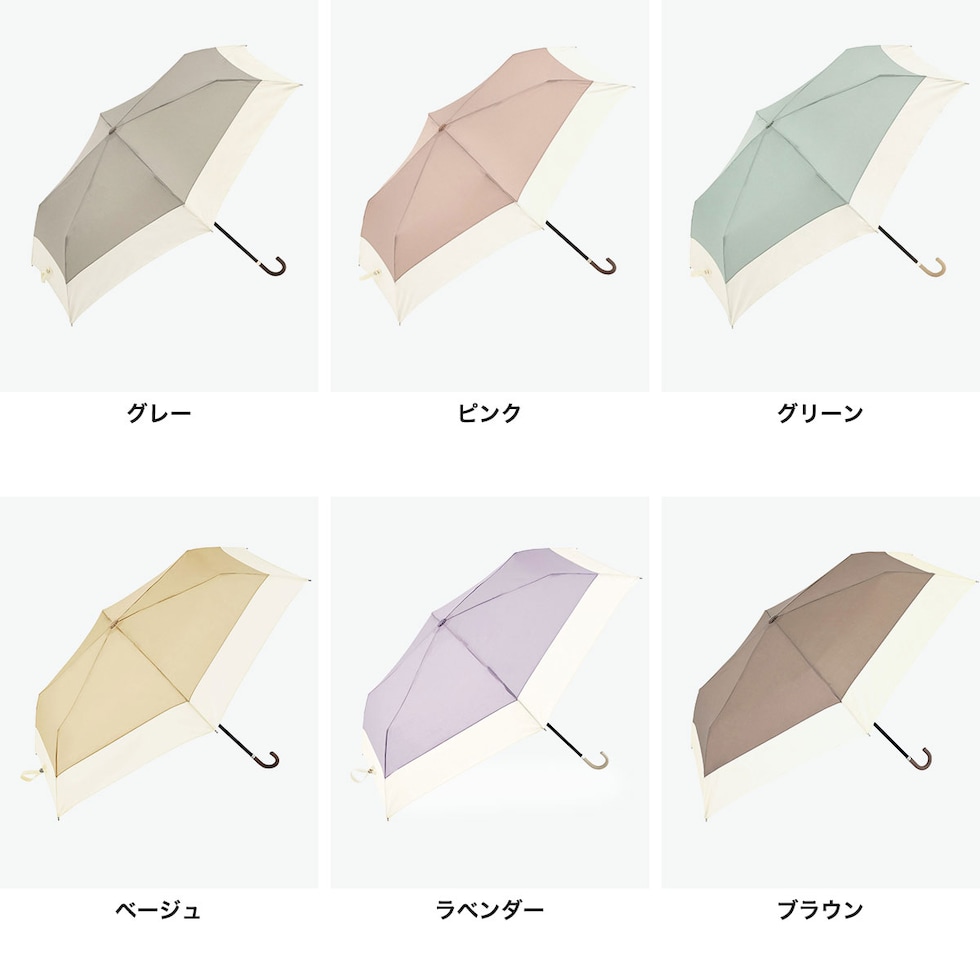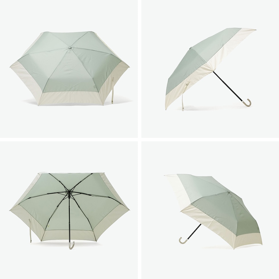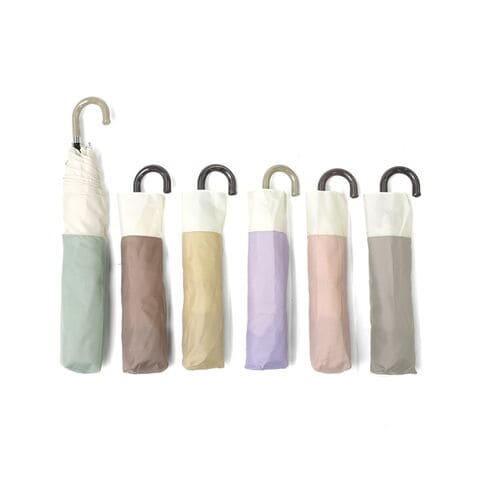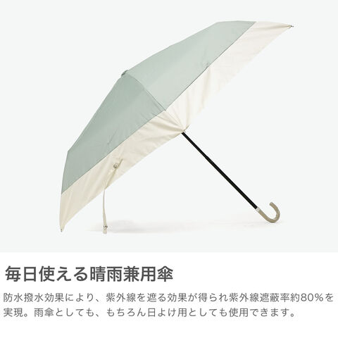 美しさと使いやすさ どんなシーンにも合わせやすいバイカラーの優しい色合いがフレッシュな印象の折りたたみ傘。防水撥水効果により紫外線遮蔽率80%で、雨傘としての機能に加え、日よけ用としても使用できるアイテム。開閉時に安心のセーフガード付きなど細部にまでこだわりました。上品なバイカラーデザインとコンパクトなサイズ感で使い勝手抜群です。 |