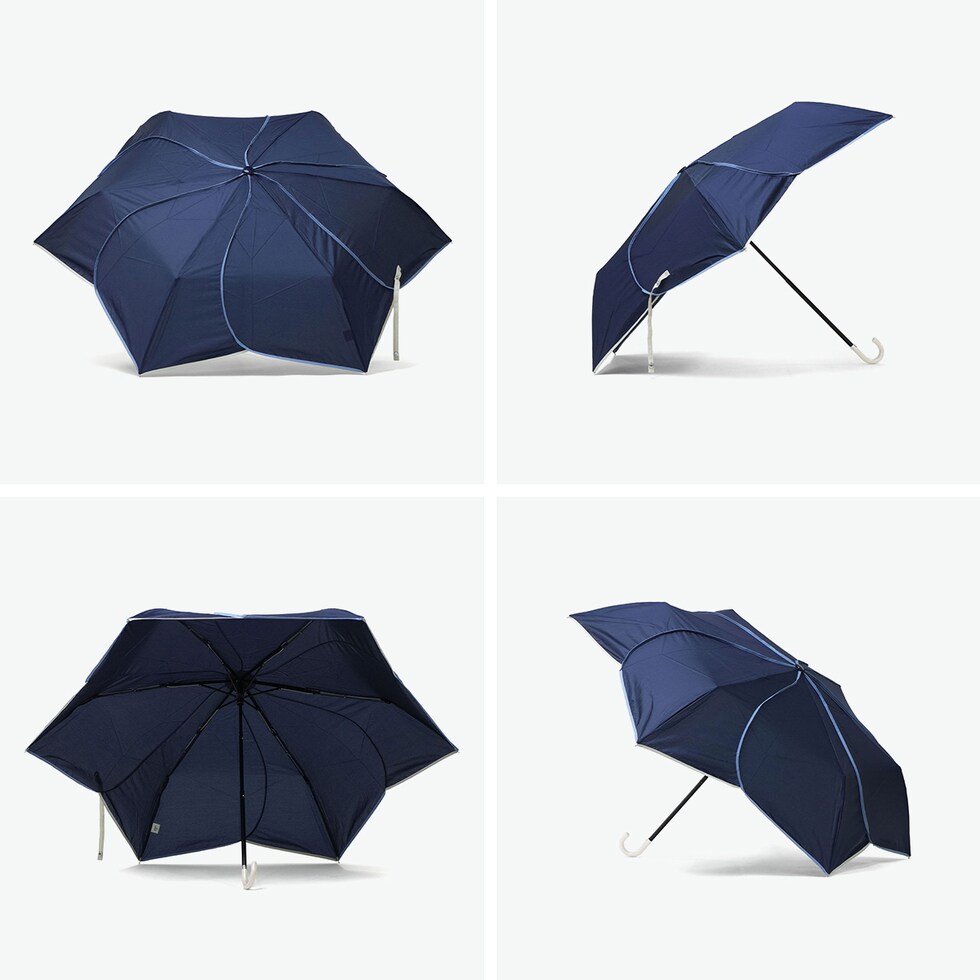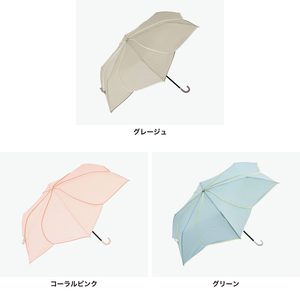 ふわりと咲く上品さ 憂鬱な雨の日もおしゃれに花びらのシルエットが美しい、折りたたみ傘。防水撥水効果により紫外線遮蔽率80%で、雨傘としての機能に加え、日よけ用としても使用できます。開閉時に安心のセーフガード付きなど細部にまでこだわりました。オンオフ問わず使いやすい大人可愛いアイテムに仕上がっています。 |
