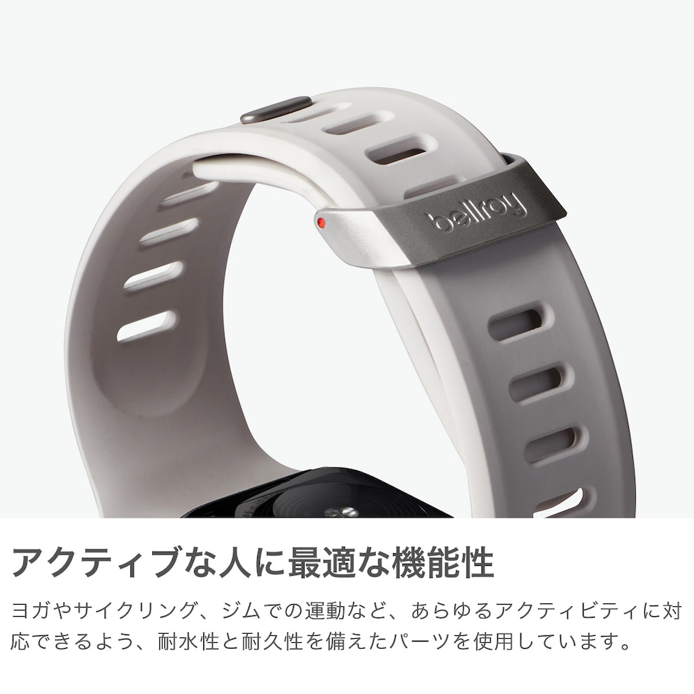 | スポーティー×シンプル Apple Watchバンド メタリックなディティールと洗練されたシルエットでスタイリッシュなムードを高めるApple Watchバンド。耐水性と耐久性を備えたパーツは、なめらかな質感で手首に心地よくフィット。内側に通気性をもたせた構造で、常に快適に装着することができます。 |