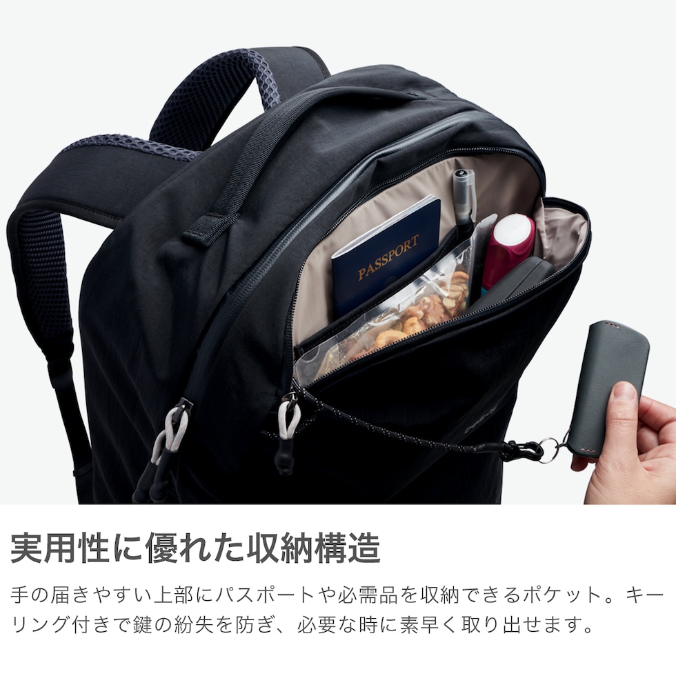 | 旅も仕事も 軽さを味方に 軽さと容量を両立したBellroyのLite Travel Pack。約30Lの大容量ながら超軽量設計で、通勤から旅行、出張まで幅広く対応します。耐水性と耐久性を兼ね備えたリップストップ生地を採用し、軽やかな背負い心地を実現。B4サイズや16インチPCも収納可能で、日常使いからトラベルまで頼れる内部設計も魅力です。 |