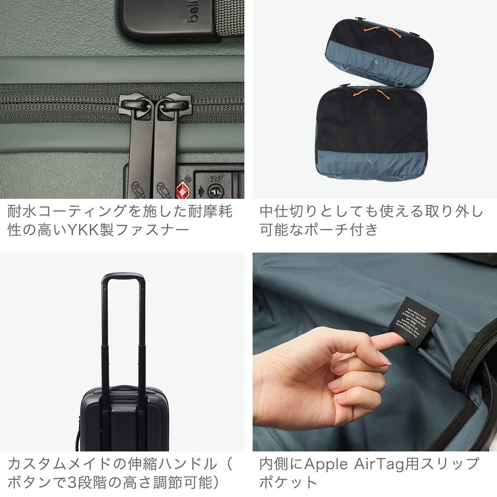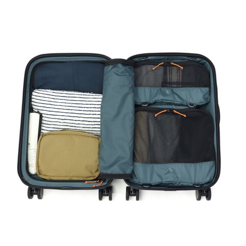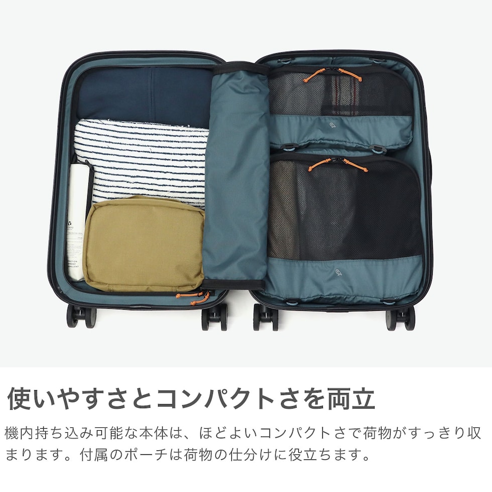 コンパクトキャリー なめらかな滑りで快適な旅を実現するコンパクトな機内持ち込みサイズのキャリーケース。マットなポリカーボネートシェル素材を採用したシンプルなデザインで旅行からビジネスまで幅広く活躍。AirTag用スリップポケットの装備や、内側の仕切りポケットは取り外して使うこともできるなど機能的な仕上がりとなっています。 |