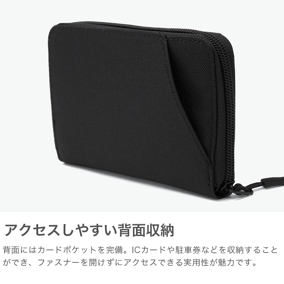ブラックのボディにおなじみのスマイリングゴリラネームが映える、印象的な二つ折り財布。ラウンドファスナー仕様でしっかりと閉まり、中身が増えてもスマートなシルエットをキープできます。コンパクトさを求めつつも、収納力を確保したい方にぴったりのアイテムです。