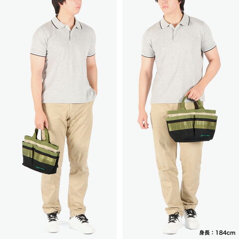 | クラシックな色合いで 小さくても頼れる収納力 「森」をテーマに、クラシックなアウトドアウェアから着想を得たカラーリングと、ナチュラルな素材の表情が、唯一無二の雰囲気を醸し出すシリーズ『WOODLAND SERIES』。こちらは、BRIEFINGらしい立体的なポケットを配したカートトートです。耐久性の高い素材を組み合わせたタフなつくりで、ラウンド中に必要なアイテムをスマートに持ち運べます。デザイン性の高さはもちろん、ポケットの収納力を確保することで、コンパクトな見ために反した収納力の高さも兼備。メインルームにはしっかりとしたマチ幅が設けられ、500mlボトルやゴルフアクセサリーもすっきり収まり、荷物の出し入れもスムーズです。ゴルフシーンはもちろん、普段使いや旅行のお供にも幅広いシーンで活躍する万能アイテムです。 |