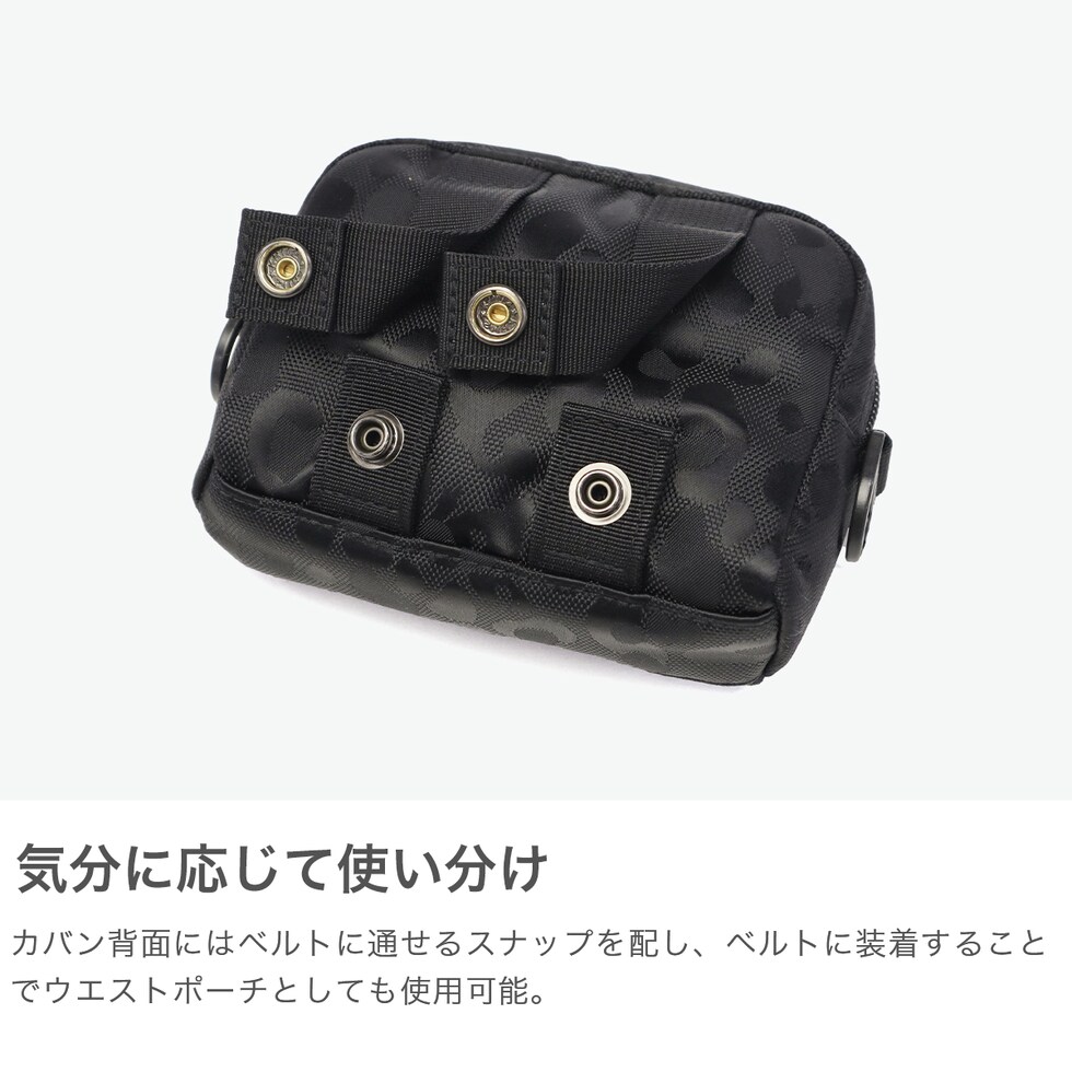ミニショルダーポーチ オリジナルのレオパード柄をジャガード織で表現した、ラグジュアリーな雰囲気漂う『LEOPARD JACQUARD コレクション』のショルダーポーチ。耐久性に優れた光沢感ある生地に撥水加工を施し、フィールドでも安心。背面にはベルトに通せるスナップを配し、ベルトに装着することでウエストポーチに。また、ショルダーベルトは取り外しが可能で、ポーチとしてもお使いいただける3WAY仕様でユニセックスでお使い頂けるシーズン限定アイテムとなっています。 |