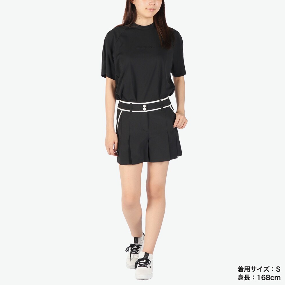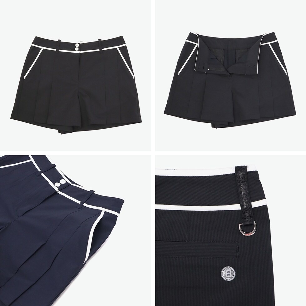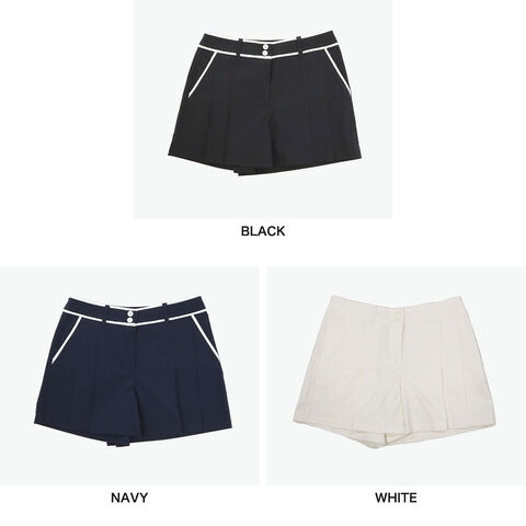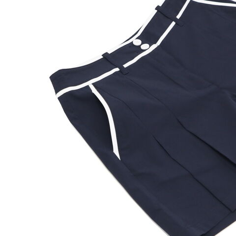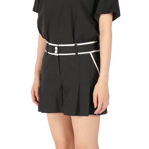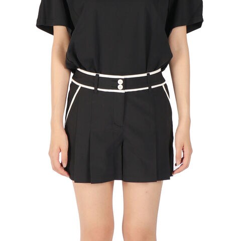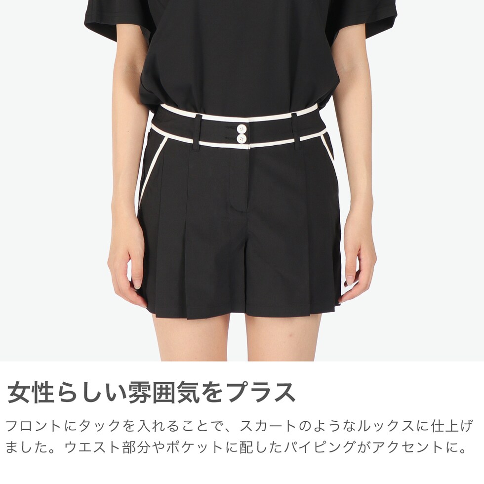 | シルエット×デザインで 洗練ゴルフスタイル タック入りデザインで、スカートのような上品ルックスを演出するショートパンツです。ストライプ状の立体感ある生地とパイピングがアクセントに。抜群のストレッチ性とさらりとした肌ざわりで、暑い日のプレーも快適です。 |