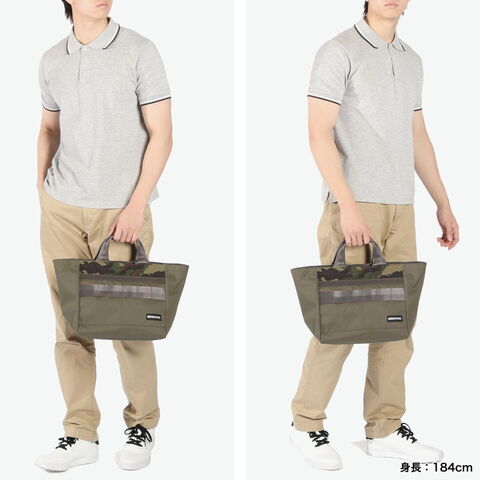 | スポーティに決まる 大容量カートトート 洗練されたデザインと高い耐久性を兼ね備えた、A4サイズ対応の大容量カートトート。軽量ナイロン素材で持ち運びやすいナイロン素材を採用し、ゴルフ場でも街でも活躍します。カモ柄デザインが施され、スポーティな印象を演出。シンプルながらも機能的な収納力で、ラウンドバッグとしても最適な一品です。 |