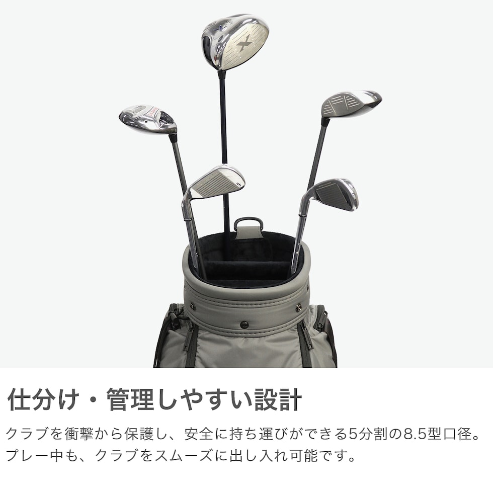 8.5型 <対応クラブ長さ> 46インチ <本体> W25×H85(フードなし)/126(フードあり)×D34(cm) <口枠> 5分割 <種類> カート ※商品により、若干の個体差が生じます。 |