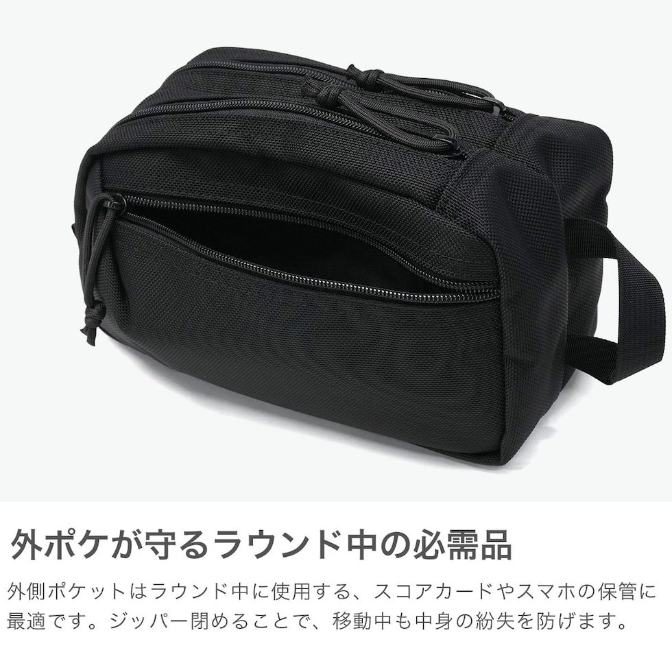 タフなゴルフポーチ ブランドのルーツでもある「MADE IN USA COLLECTION」のゴルフポーチです。ブランド史上最もヘビーな、耐久性・耐摩耗性に優れたバリスティックナイロンを採用。デイリーなヘビーユースにも揺るぎない強度を発揮し、ラウンド中も持ち物を保護します。USAコレクション特有の重厚感のあるルックスが、圧倒的な存在感を演出。本物志向のゴルファーに贈る、機能性とデザイン性に優れた至高のアイテムです。 |