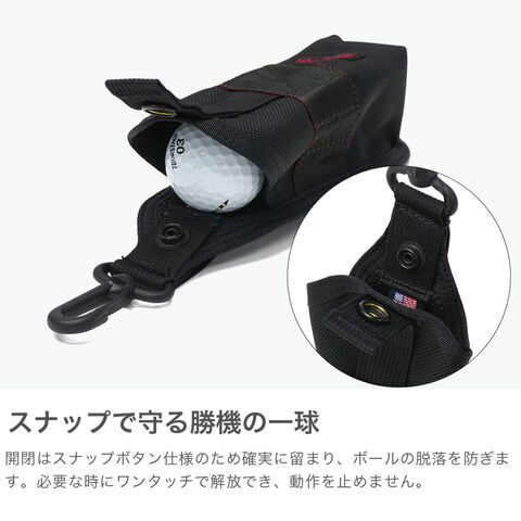 ナイロンボールポーチ ブランドのルーツでもある「MADE IN USA COLLECTION」のボールポーチです。ブランド史上最もヘビーな、耐久性・耐摩耗性に優れたバリスティックナイロンを採用。デイリーなヘビーユースにも揺るぎない強度を発揮し、ゴルフボールを保護します。バッグやボトムスのベルト等にも装着可能な、フックやスナップボタンのナイロンベルトを完備。本物志向のゴルファーに贈る、機能性とデザイン性に優れた至高のアイテムです。 |