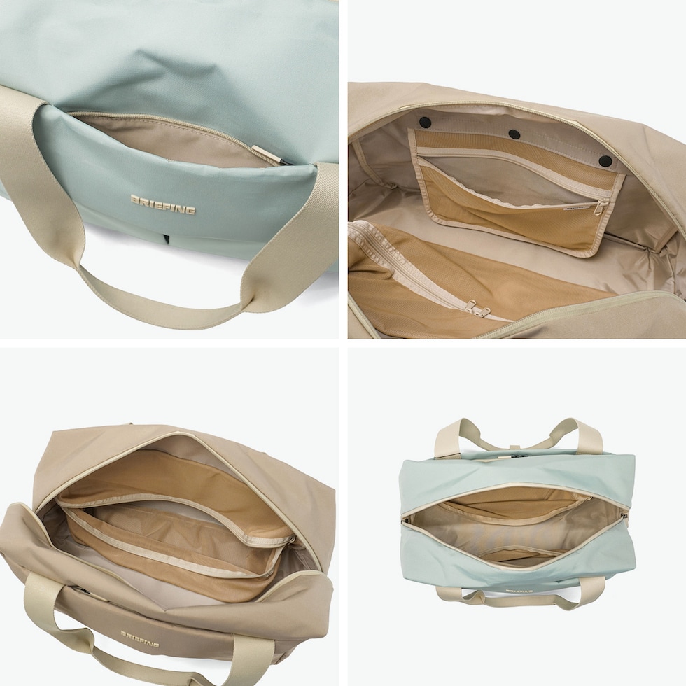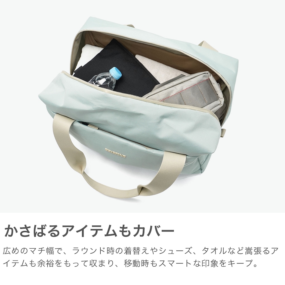 確かな収納力をプラス 『BRIEFING GOLF』から、ブランド初の女性ゴルファー向けシリーズが登場。耐久性や実用性はそのままに、女性のプレースタイルに寄り添うカラーリングとサイズバランスを追求しました。ワントーンでまとめたニュートラルカラーが上品で洗練された印象を演出。ラウンド時の着替えやシューズ、タオルなど嵩張るアイテムも余裕をもって収まり、移動時もスマートな印象をキープできる『NC SERIES』のボストンバッグです。 |