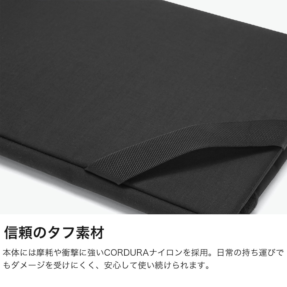堅牢なケース ドイツ・ベルリンで熟練の職人が手がけるブランド『Bagjack』の横型PCケース。本体部分はパッド入りで、開閉部分はフラップとベルクロ留めを備え、耐久性に優れています。さらに前面には書類用のポケットを装備し、裏側のグリップにより持ち運びもスマートに。大切なデバイス類をしっかり保護し、ビジネスシーンを支えてくれるアイテムです。 |