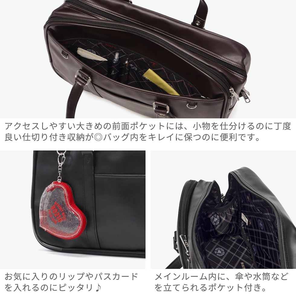 | シンプル可愛い 王道スクールバッグ 人気ブランド『BEVERLY HILLS POLO CLUB』の合皮スクールバッグ。A4対応・約16Lの大容量で、教科書やノートもたっぷり収納できます。中身を分けられる2層式構造で整理しやすく、通学もスマートに。自立しやすい底鋲付きで扱いやすさも◎。シンプルなロゴデザインは制服にも私服にも合わせやすく、毎日使いたくなるアイテムです。 |