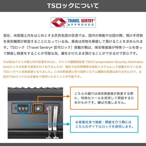 | 備考欄 | <商品のモデルチェンジについて> 【2026年1月~】 ・USBポートの廃止 ・上記USBポートの廃止に伴い内装のバッテリー収納ポケット等を省略 ・背面のトラベルセントリーIDのプレートのデザインを変更 |