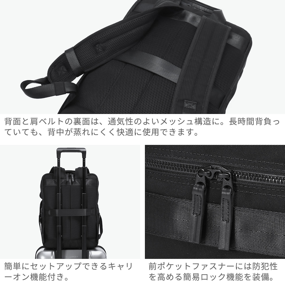 | 持つだけで整う日々 大容量ビジネスリュック ビジネスにもカジュアルにも馴染む、機能美を追求した「BAUER BS」シリーズのLサイズ ビジネスリュック。シンプルで洗練されたデザインが、多様なビジネスシーンにフィットします。内装は頻繁に使うビジネスツールを効率よく収納できるポケットレイアウトで、必要なものにすぐ手が届く快適な使い心地を実現しました。高い実用性を備え、日々の通勤から出張まで幅広く活躍するバッグです。 |