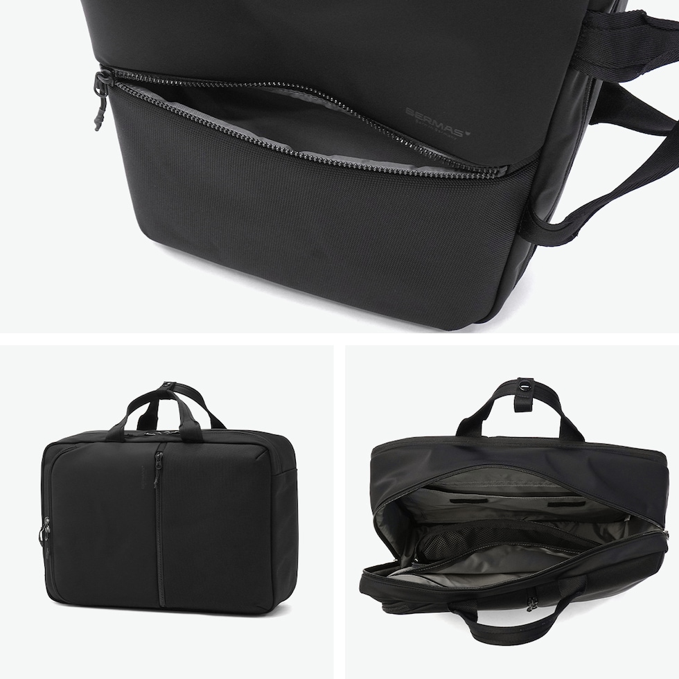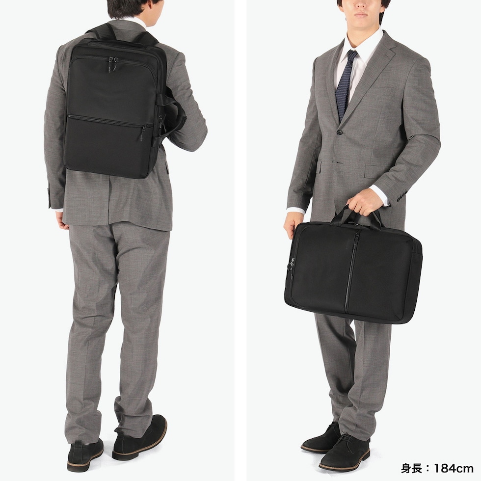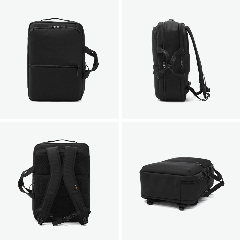機能美デザイン 軽さと耐久性を兼ね備えたビジネスカジュアルシリーズ「CITYSCAPE」の2WAYリュック。ブリーフケースとの使い分けが可能です。畳んだ衣類の形崩れを抑えながら出し入れができる収納ポケット付きで、出張にも最適な仕様になっています。撥水・防雨・耐摩耗に優れた高密度ナイロン生地で、雨の日でも安心。PC収納部や細かなポケットも装備し、ビジネスをサポートする実用的な機能が満載です。 |