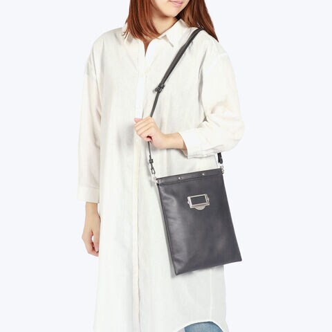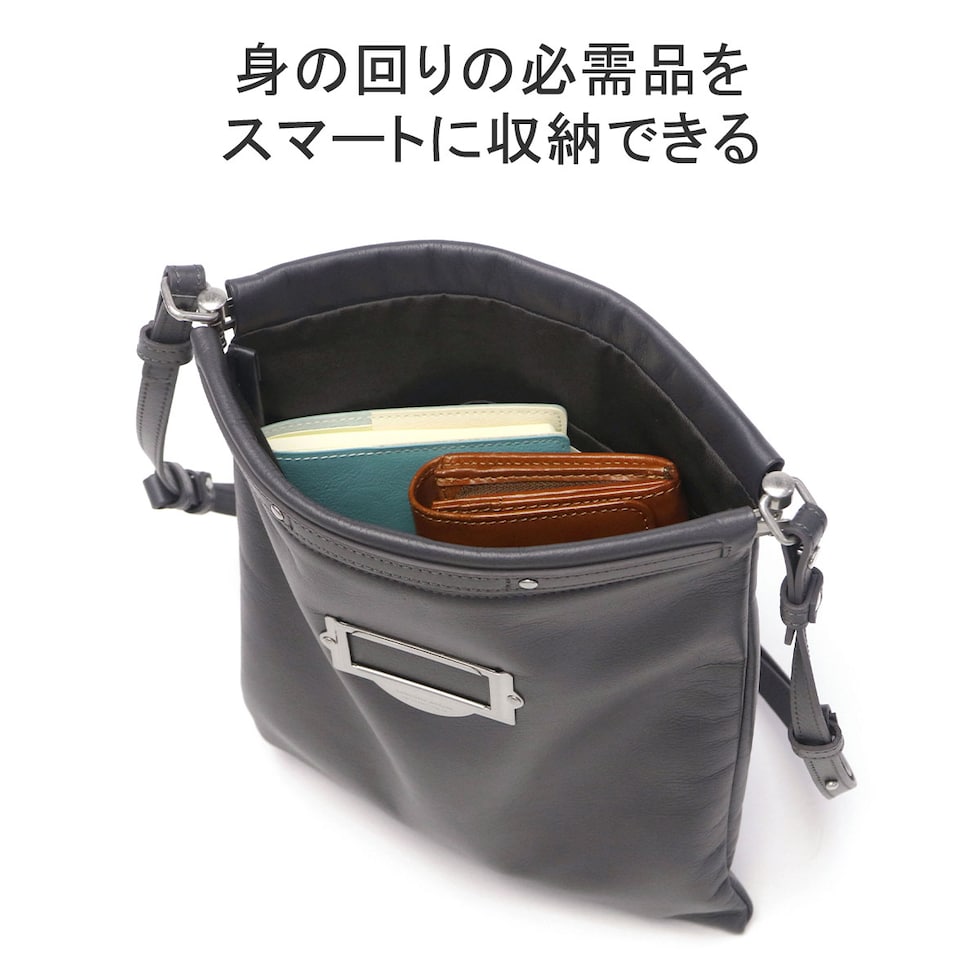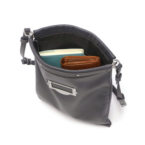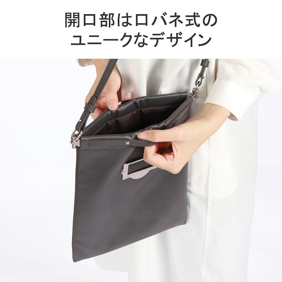 | 機能美を追求した 新感覚ショルダーバッグ キャビネットタグをイメージしたbpオリジナル金具がアクセントのショルダーバッグ。口バネ式のデザインで、簡単に開閉できる利便性が魅力です。ソフトなスムースレザーを一枚取りで仕立てており、やわらかい手触りが心地よい仕上がりです。折りたたんでクラッチとしても、ショルダー紐を外してバッグインバッグとしても使用可能。スタイリッシュさと実用性を兼ね備えたアイテムです。 |
