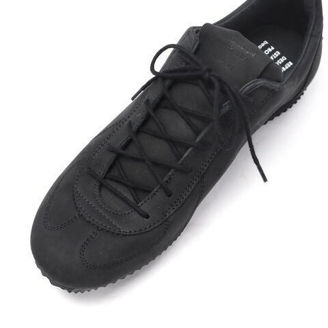 上品な雰囲気漂う beautiful peopleとREPRODUCTION OF FOUNDによるコラボスニーカー。内側縫製とステッチのみのアッパーが特徴で、薄型ソールによってドレスシューズの様な上品さを演出します。シューレースを外してスリッポンとしても着用可能。インソールにはイタリア産ピッグレザーを使用しており、耐久性と上質さを兼ね備えています。 |