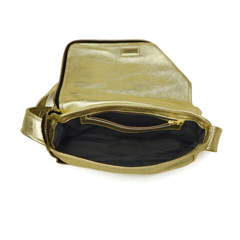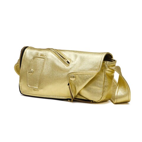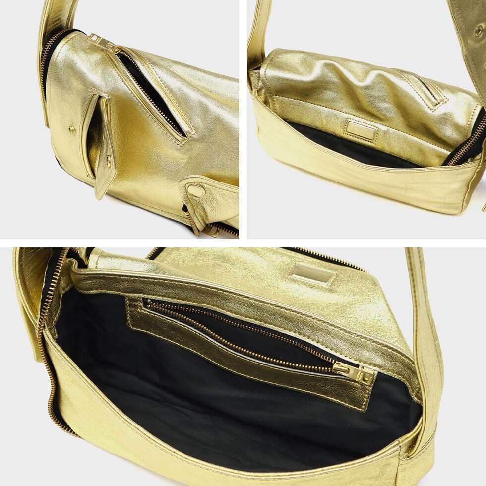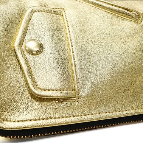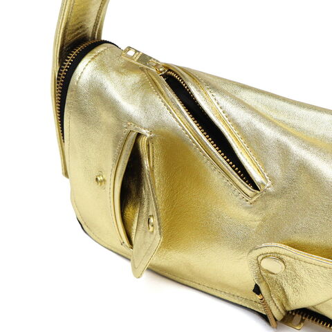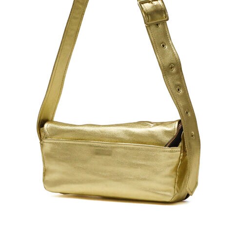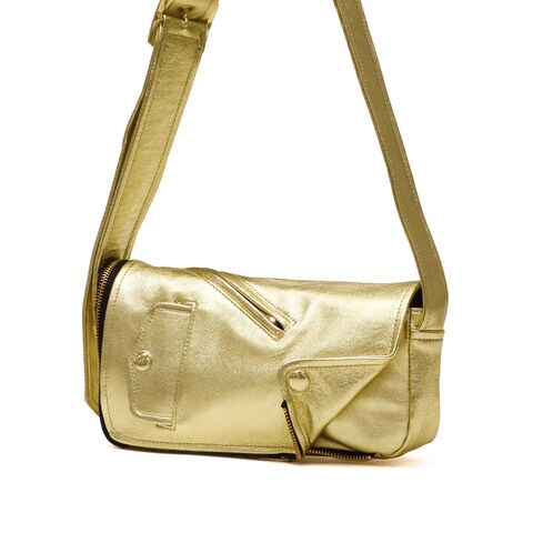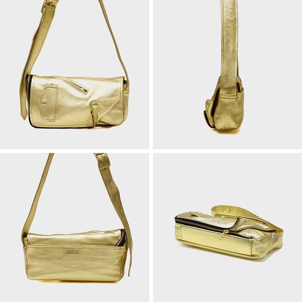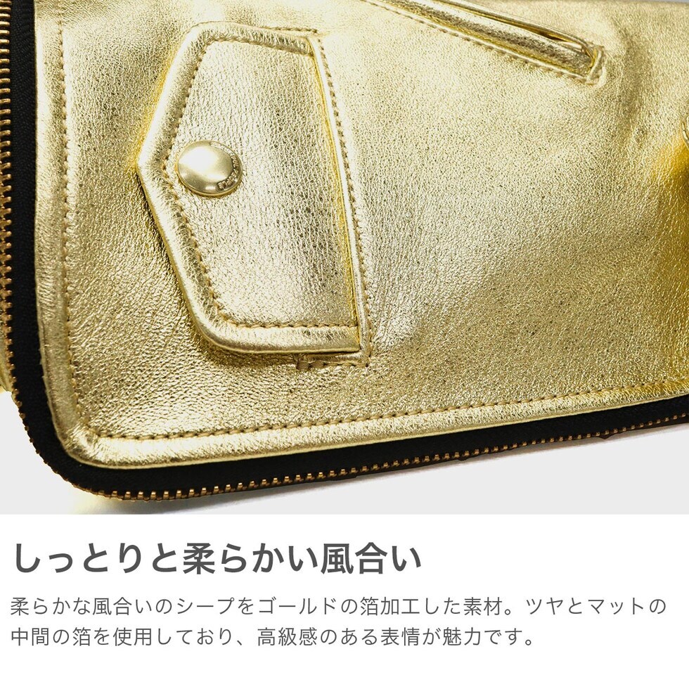 | ライダースの雰囲気纏う モードなショルダー ブランドアイコンの定番ヴィンテージライダースジャケットのディティールをギュッと凝縮したデザインのフラップショルダーバッグ。ファスナーとマグネットで開閉仕様で、使い勝手を考慮した実用的な造りです。柔らかな風合いのシープレザーにゴールドの箔加工を施し、上品さとカジュアル感を兼ね備えた仕上がりに。モード感漂う洗練された逸品で、日常使いから特別なシーンまで幅広く活躍します。 |