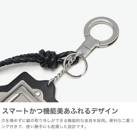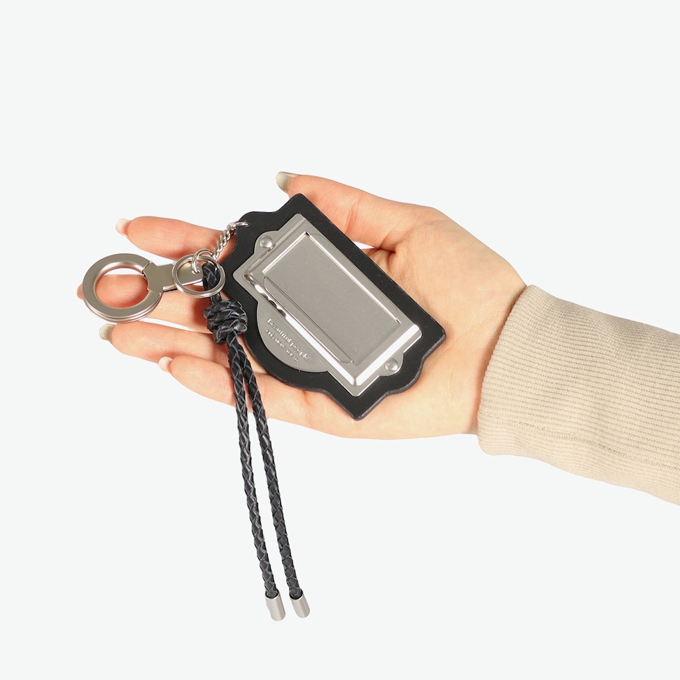 革のきらめき 上質なスムースカウレザーに素押しロゴを添えたcabinet charm。ミニマルながら存在感があり、二重リングで鍵やバッグチャームとしても活躍。ユニセックスで使え、ギフトにも最適なキーホルダーです。 |