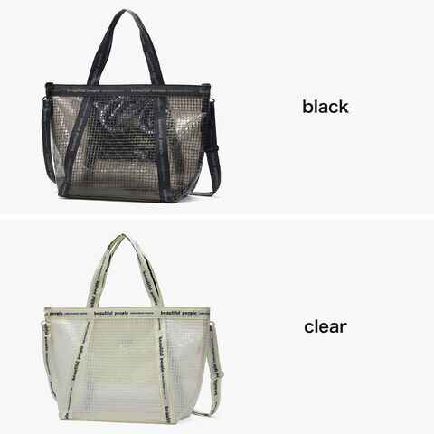 ビューティフルピープル トートバッグ レディース 大きめ A4 beautiful people バッグ 軽量 ショルダーバッグ 斜めがけバッグ 肩掛け ブランド クリアバッグ おしゃれ 2WAY 日本製 plaid vinyl logo tape bag L 1515611969