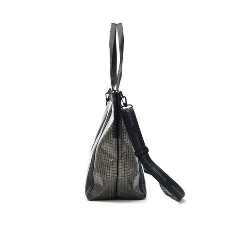 洗練されたトートバッグ A4サイズがストレスなく入るサイズ感の2WAYトートバッグです。注目すべきは、テント素材を使った本体の質感。格子柄のビニールには表面にフッ素加工を施すことで耐光性を高め、黄変せず長く愛用できる丈夫さを生み出しています。艶やかで清涼感のある素材に、オリジナルジャガードテープを組み合わせ、存在感のあるルックスに仕上げました。 |