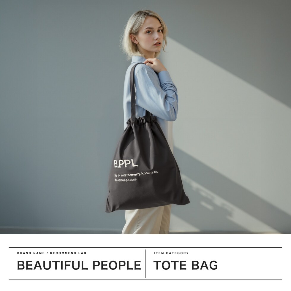 ビューティフルピープル トートバッグ レディース メンズ 大きめ A4 beautiful people バッグ トート 軽量 巾着 サブバッグ おしゃれ 巾着バッグ 大きめサイズ 大人 刺繍 コットン 綿 B.PPL gathering tote bag 612012
