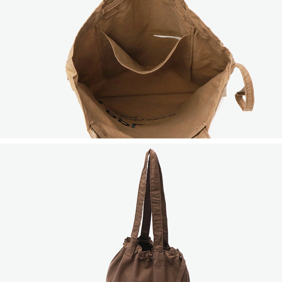 | 結んでかわいい 大きめ巾着トート ゆるっと結ぶだけで大人かわいいが叶う、巾着トート。薄くて軽いコットン生地で、荷物をざっくりと収納できる大きめサイズです。気取らずに持てるラフなデザインになっており、毎日使いから旅行のサブバッグなど、シーンを問わずお使いいただけます。 |