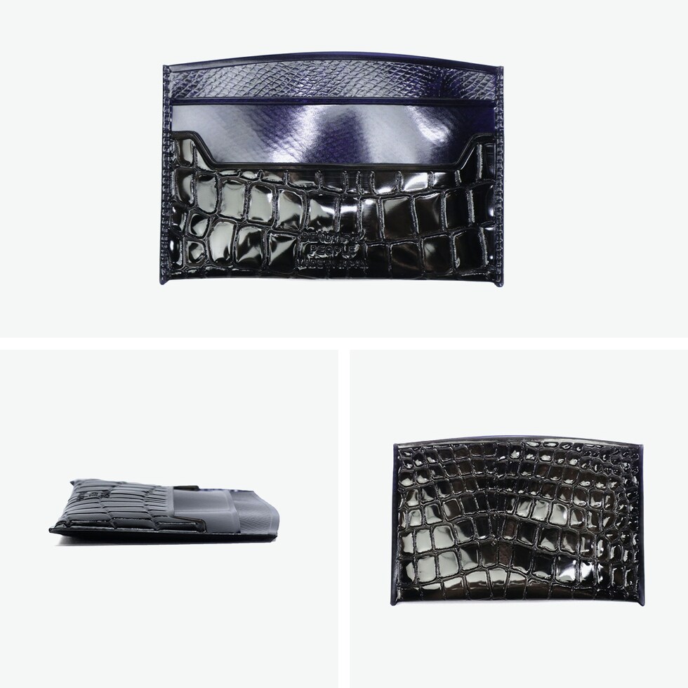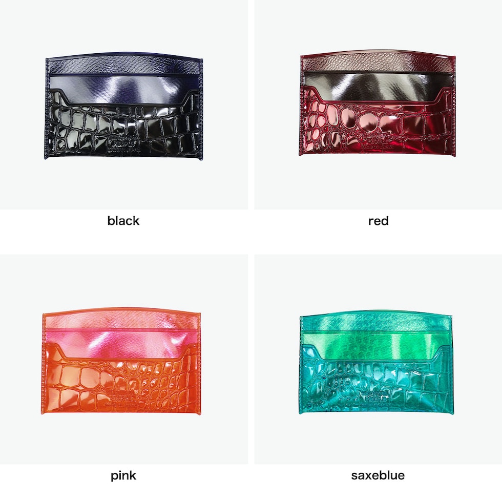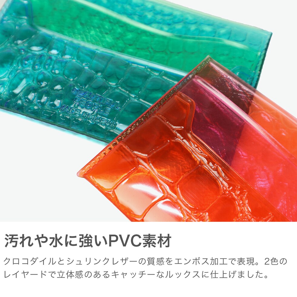 「隠すものは何もない/Nothing to hide」をコンセプトに、色や中身の透け感を楽しめるカードケース。縫い目は入れずにラグジュアリーな小物の念引きやステッチを熱加工により表現しています。2種の異なる色の重なり合いと、エンボス加工を表面に施したキャッチーな見た目が、シンプルながらも存在感を放つアイテムです。