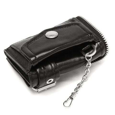 フラグメントケース ブランドアイコンの定番ヴィンテージライダースジャケットのディティールを凝縮したフラグメントケース。カードホルダーとコインケースが一式になった、コンパクトながら使い勝手の良いアイテムです。ソフトでなめらかな羊革を使用しており、使用感も抜群です。 |