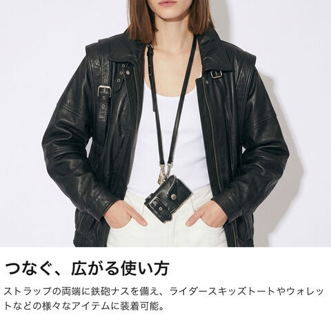 レザーストラップ 『beautiful people/ビューティフルピープル』の、ブランドアイコンの定番ヴィンテージライダースジャケットのディティールを施したレザーストラップ。両端鉄砲ナス付きのため、riders kids tote bag(611905)やriders pouch(1525611995)やexcerption riders fragment case(1616511974)などの様々なアイテムなどに取付可能。ジャガードネームのデザインを金属で作成したオリジナルメタルプレート付きなのもポイント。ソフトでなめらかな羊革を使用し、上品さの中にもカジュアル感のある仕上がりとなっています。 |
