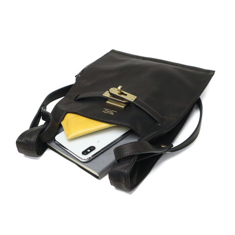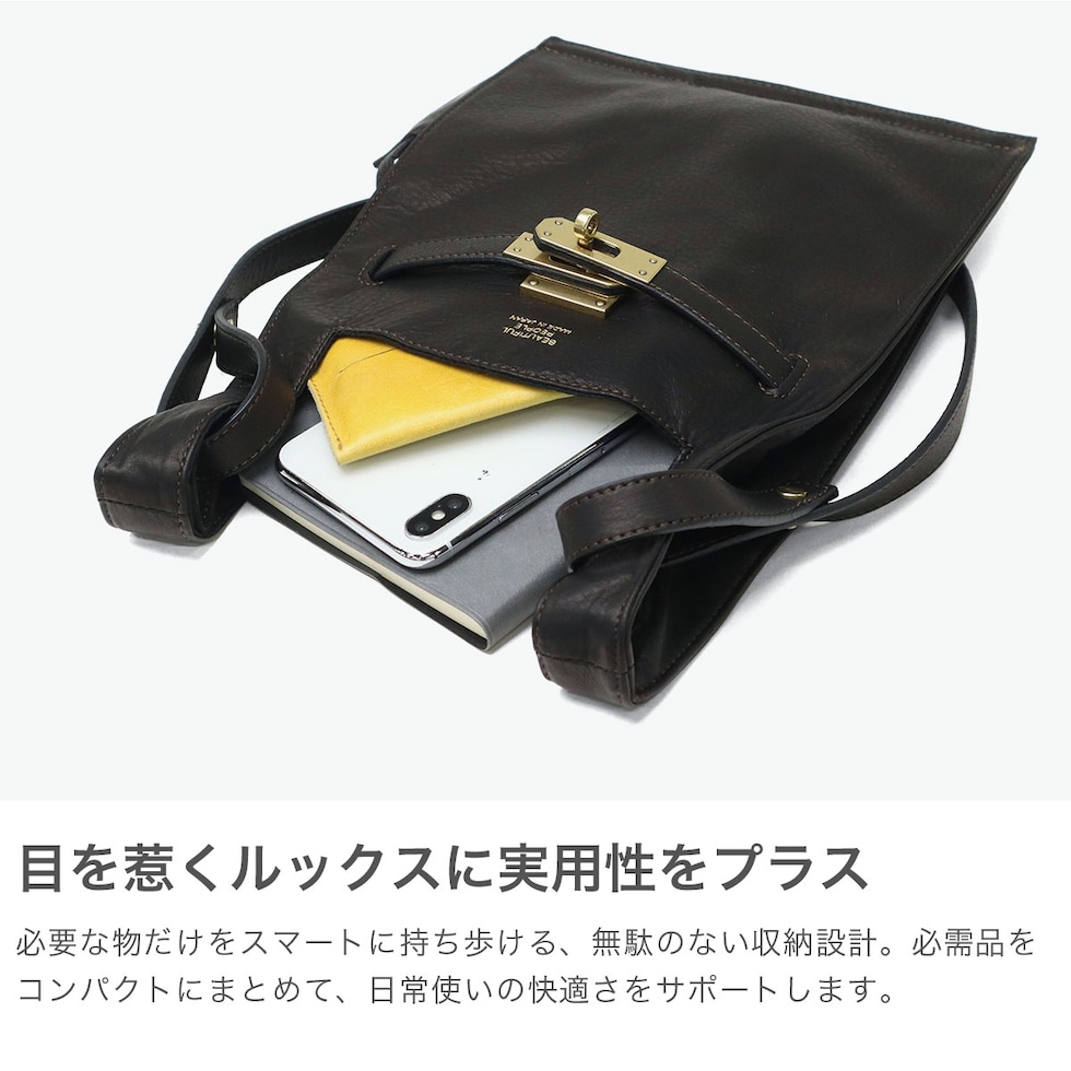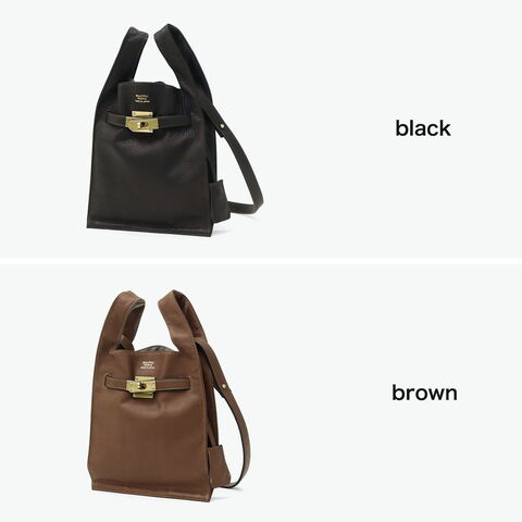 ユニークな形のコラボ マーケットバッグと金具、どちらも既視感のある組み合わせで作成した2WAYショルダーバッグ。ショルダーを外してミニトートとしても使用できる実用性の高さもポイントです。表面に使い込まれたような深みが増すよう、なめしの段階で2度オイルを染み込ませたこだわりの牛革を使用。生活になじみのあるマーケットバッグを高級感のある素材で仕立て直すことで、新しさと遊び心を感じられるアイテムに仕上がっています。 |