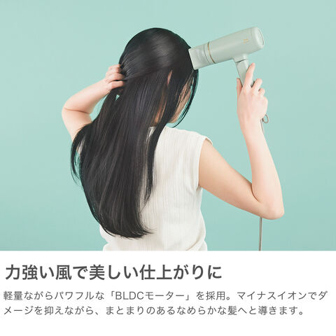 | 速くやさしく つやめく毎日 時短も美髪も叶える、軽量コンパクトなヘアドライヤー。パワフルな風を生むBLDCモーター搭載で、速乾力抜群です。マイナスイオンで髪をやさしくケアし、指通りなめらかに。折りたたみ式で収納や旅行にも便利!毎日のドライ時間が楽しみになります。 |