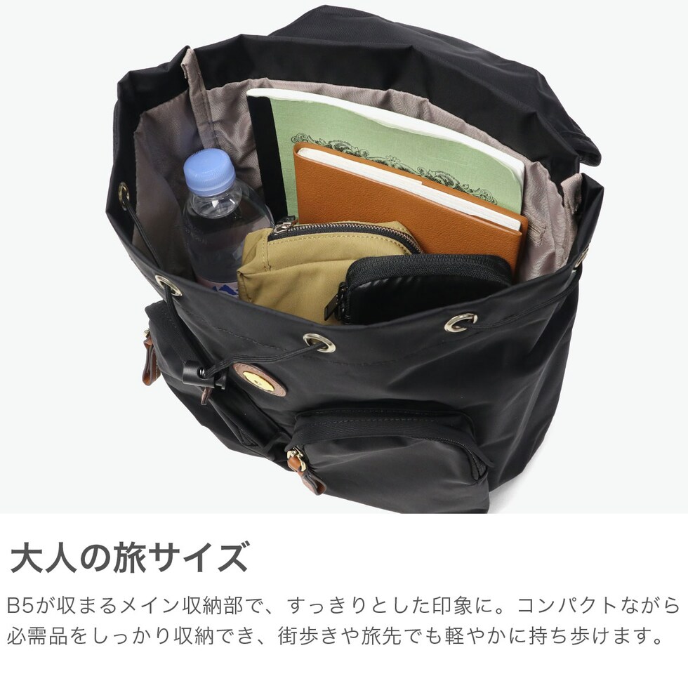 扱いやすいサイズ感 機能性とファッション性を両立させるトラベルバッグブランド『BRIC'S』のリュックサック。上品な光沢感のあるナイロンに本革をあしらった、洗練されたデザインが魅力です。B5サイズ対応の小さめサイズながら、豊富なポケットでしっかりと収納量を確保。旅行時にも疲れにくい軽量設計もポイントです。 |