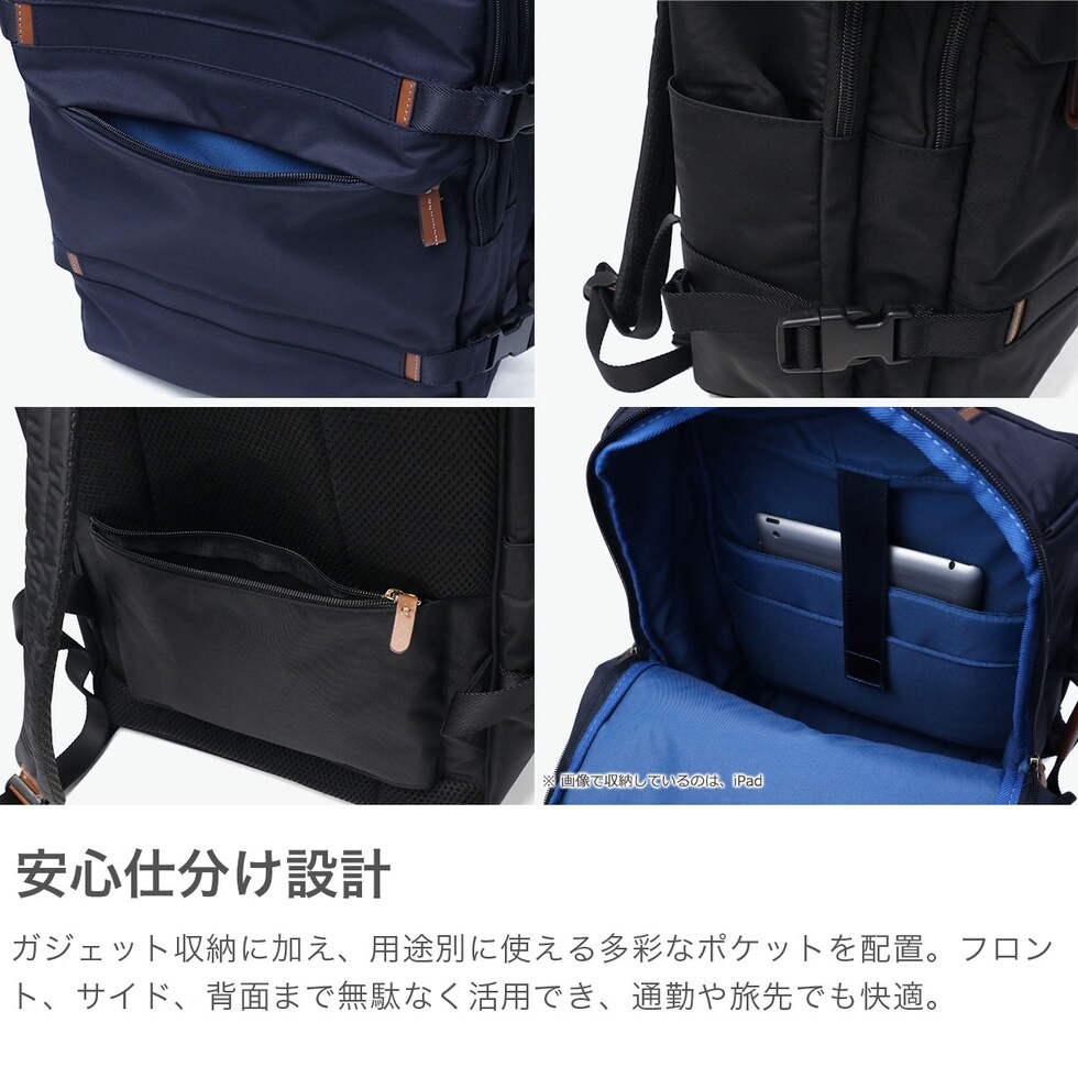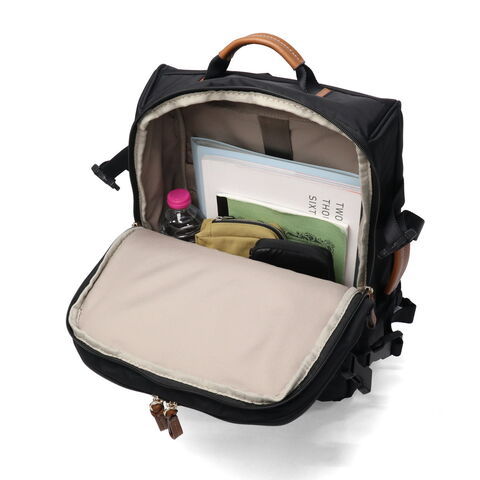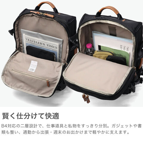 機能性とファッション性を両立させるトラベルバッグブランド『BRIC'S』のリュックサック。上品な光沢感のあるナイロンに本革をあしらった、洗練されたデザインが魅力です。B4サイズ対応でしっかりとマチ幅を設けた大容量タイプです。荷物のパッキングもしやすいスクエア型を採用し、旅行も出張もこれ一つでカバーできる設計。落ち着いたデザインでどんなシーンにもなじむアイテムです。