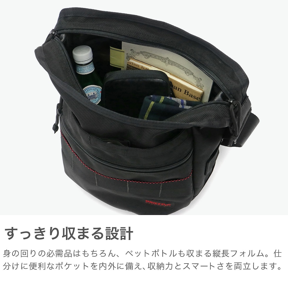 | 細部まで妥協なし 高機能ショルダーバッグ ブリーフィングの中でも代表格ともいえる定番ショルダーバッグ「DAY TRIPPER」。縦長フォルムが印象的で、身の回りの小物はもちろん、タブレットやペットボトルなどもすっきり収まる収納力を備えています。本体はブランドのメイン素材であるバリスティックナイロンを使用し、象徴でもあるレッドラインもデザインのポイントに。日常使いから旅行やアクティブシーンまで、長く愛用できるアイテムです。 |