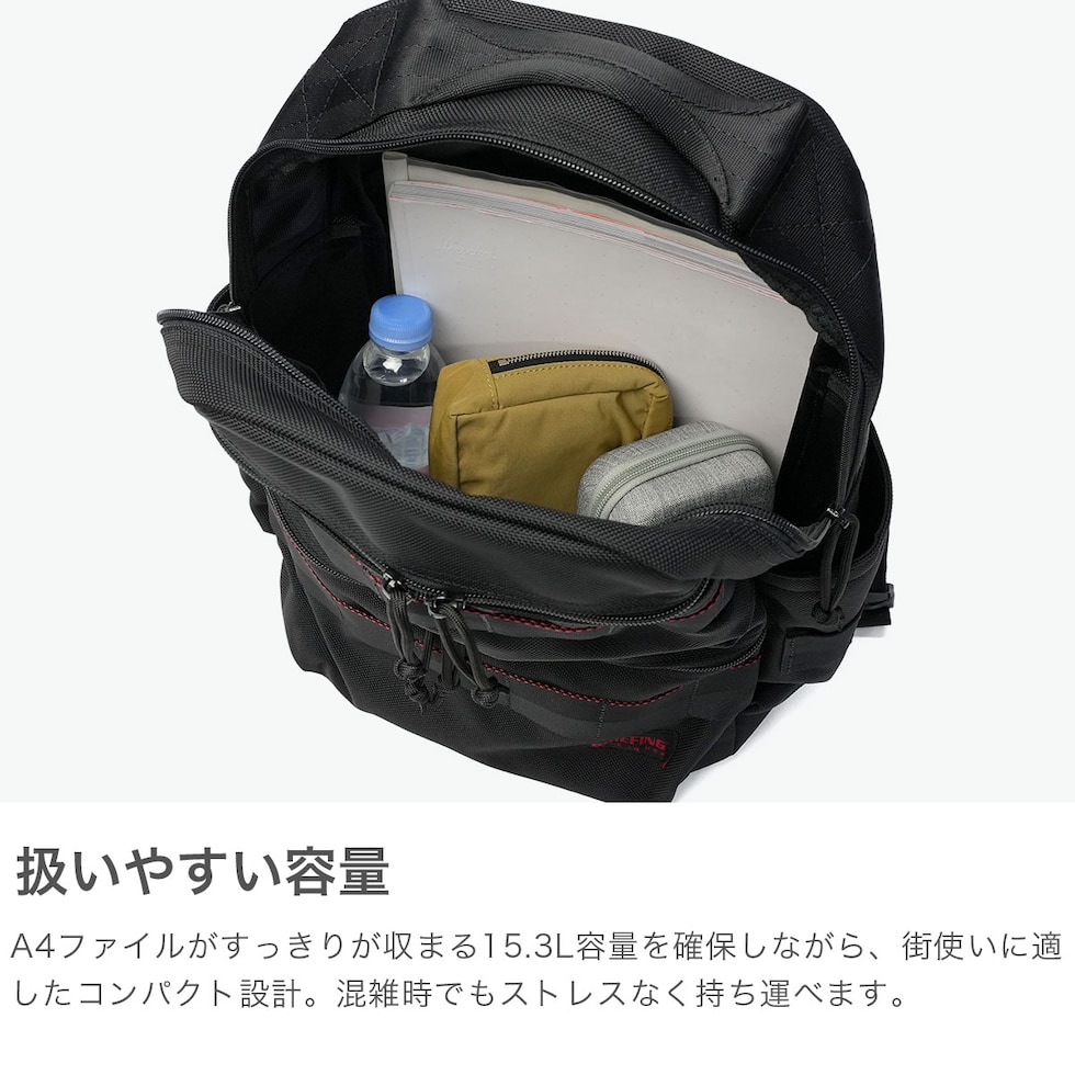 | 頑丈でタウンユースに 最適なデイパック タフな素材を使用したミリタリー感溢れる『MADE IN USA COLLECTION』のデイパック。本体はブランドのメイン素材であるバリスティックナイロンを使用し、象徴でもあるレッドラインがデザインのポイントに。メイン収納部はA4サイズが楽々納まる大きさで、普段持ち歩く荷物をしっかり収納することができます。タウンユースでの使い勝手を重視したやや小ぶりなサイズ感が魅力となっており、持ち運びしやすく男女問わずオススメのアイテムです。 |