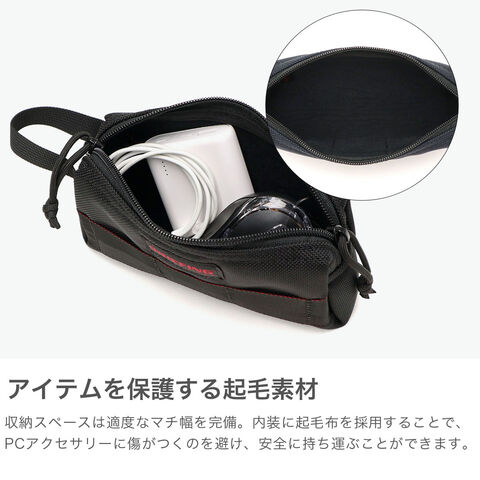 タフなポーチとしても マウスや電源アダプターをはじめとした、PCアクセサリー収納に最適なポーチが『MADE IN USA/メイドインUSA』コレクションから登場。こちらは、バッグにも収まりの良いコンパクトなMサイズです。サイドにはハンドルが付いており、持ち運びやバッグから取り出す際にも便利です。収納スペースにはBRUSH NYLON(起毛布)を採用し、普段持ち歩く小物入れとしてはもちろん、ガジェットケースとしてPC周りのアイテムをすっきりとまとめることが可能。 |