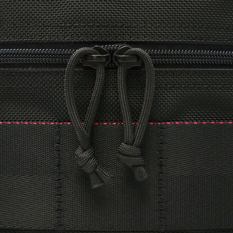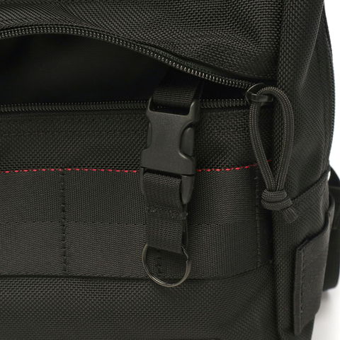 スマートな見た目ながら、メイン収納部にはマチを設けることで必要な物がしっかり収まる容量が確保されています。本体正面のジップポケットは内部にもポケットがあり、さらにキーホルダーが付属した利便性の高さが魅力。素材には、通常のナイロンより強度があり、耐久性・耐摩耗性に優れる「バリスティックナイロン」を採用。BRIEFINGが使用しているマテリアルの中で最もヘビーな素材です。