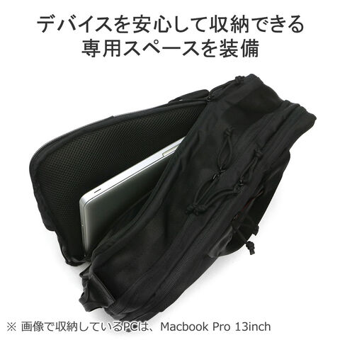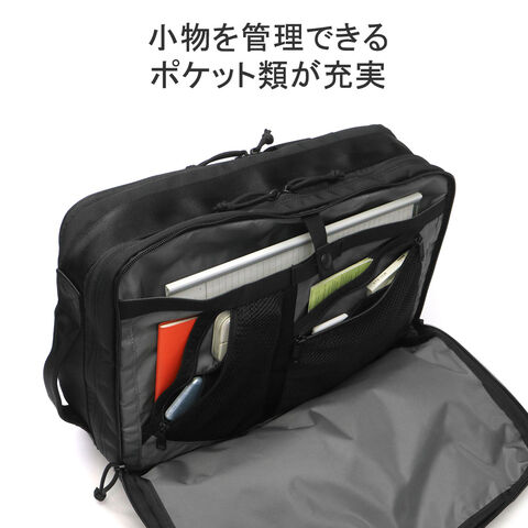 | 仕様 | <外側> ジップポケット(L)×1 └ 内蔵 ポケット(S)×3 ポケット(XS)×2 キーホルダー×1(取り外し可能) <前面収納> スナップポケット(L)×1 ポケット(S)×2 メッシュジップポケット(S)×2 └ 内蔵 メッシュポケット(S)×各2 <中央収納> ジップポケット(L)×1 メッシュジップポケット(M)×2 <背面収納> PC収納×1 |