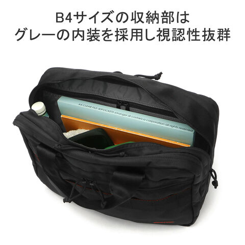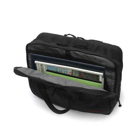 水に強い機能性と、スタイリッシュな顔立ちを併せ持つ2WAYブリーフケース。こちらは当店でしか手に入らない限定モデルです。本体には撥水素材を使用し、裏使いのファスナーを採用しているため、生活防水に対応します。収納部は荷物の仕分けに長けた3層構造で、小物類を効率的に収納できるオーガナイザーや、独立したPC専用スペースを設けており、スマートな見た目ながら機能的な仕上がりになっています。内装カラーには内部の視認性に優れたグレーを採用しているのもポイント。