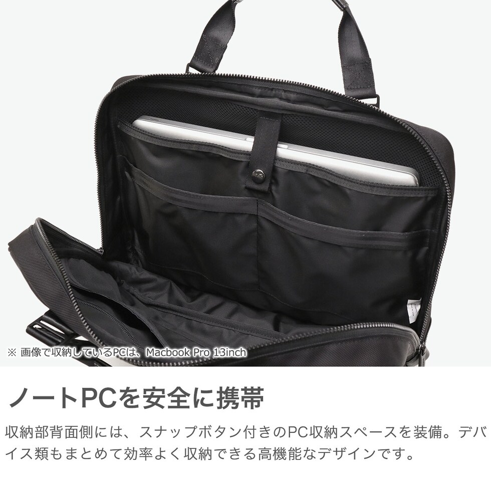 知性を携える 「SMART・SMOOTH・STYLISH」をコンセプトに人気を博した『BLACK LINE』をより現代的にアップデートし、ビジネスに特化した最上級ラインとして再ローンチ。こちらは、上質なコーデュラバリスティックナイロンを採用した、スリムかつ洗練されたブリーフケースです。PCやA4書類をスマートに収納でき、キャリーオン対応で出張にも最適。シンプルながら確かな存在感を放つ、都会派のためのビジネスバッグです。 |