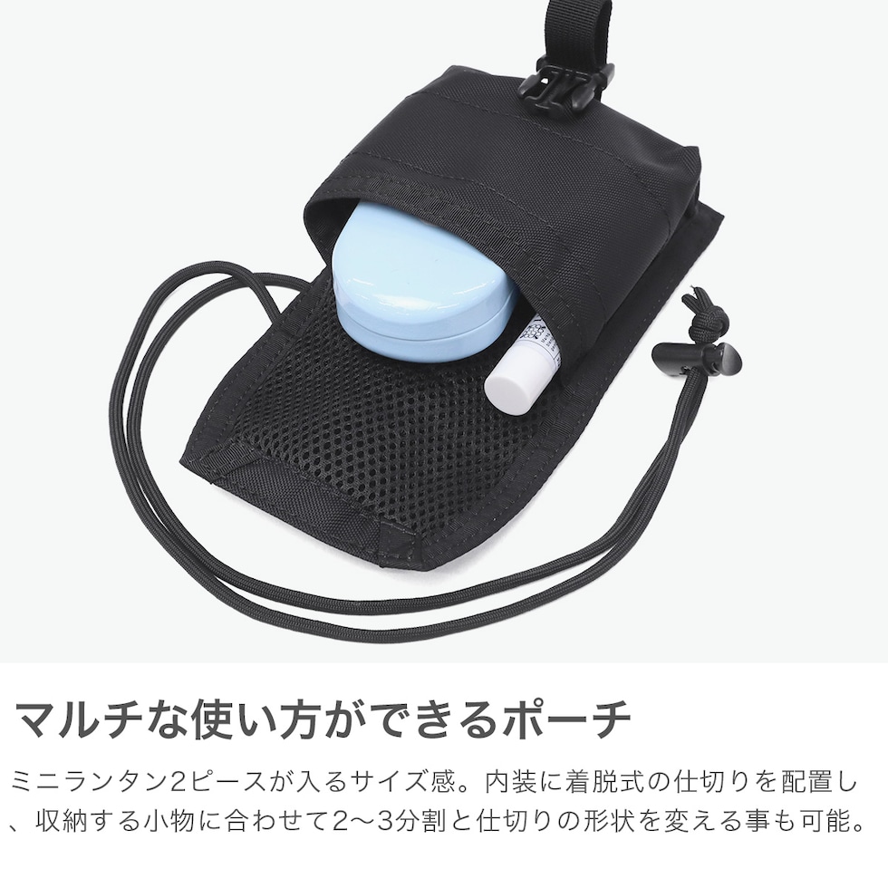 収納上手のミニポーチ マルチな使い方ができるスクウェア型のポーチ。収納するアイテムに合わせて、仕切りパーツを2分割・3分割と自在にカスタマイズできる構造になっています。バッグのウェビングテープやボトムスのベルトループなどに装着できるベルトやフックを備えており、携帯性も抜群。キャンプなどアウトドアシーンでの小物収納はもちろん、普段使いにも活躍する便利なアイテムです。 |