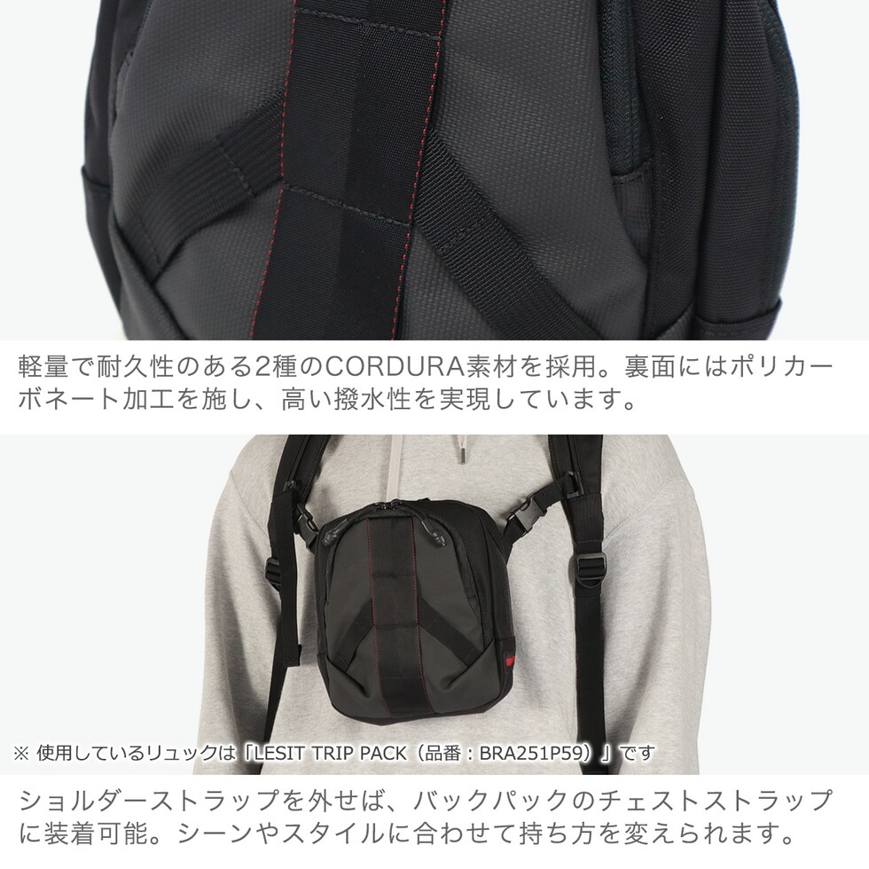 | 異素材で魅せる シンプルミニショルダー 旅をもっと身近に感じてもらいたいという思いから開発をスタートさせた『LESIT COLLECTION』からショルダーバッグが登場。コンパクトながら収納力は抜群で、日常やトラベルシーンをより快適にサポートしてくれます。異なる素材の風合いが存在感を発揮しながら、ワントーンのカラーリングでコーデに合わせやすいのも魅力です。 |