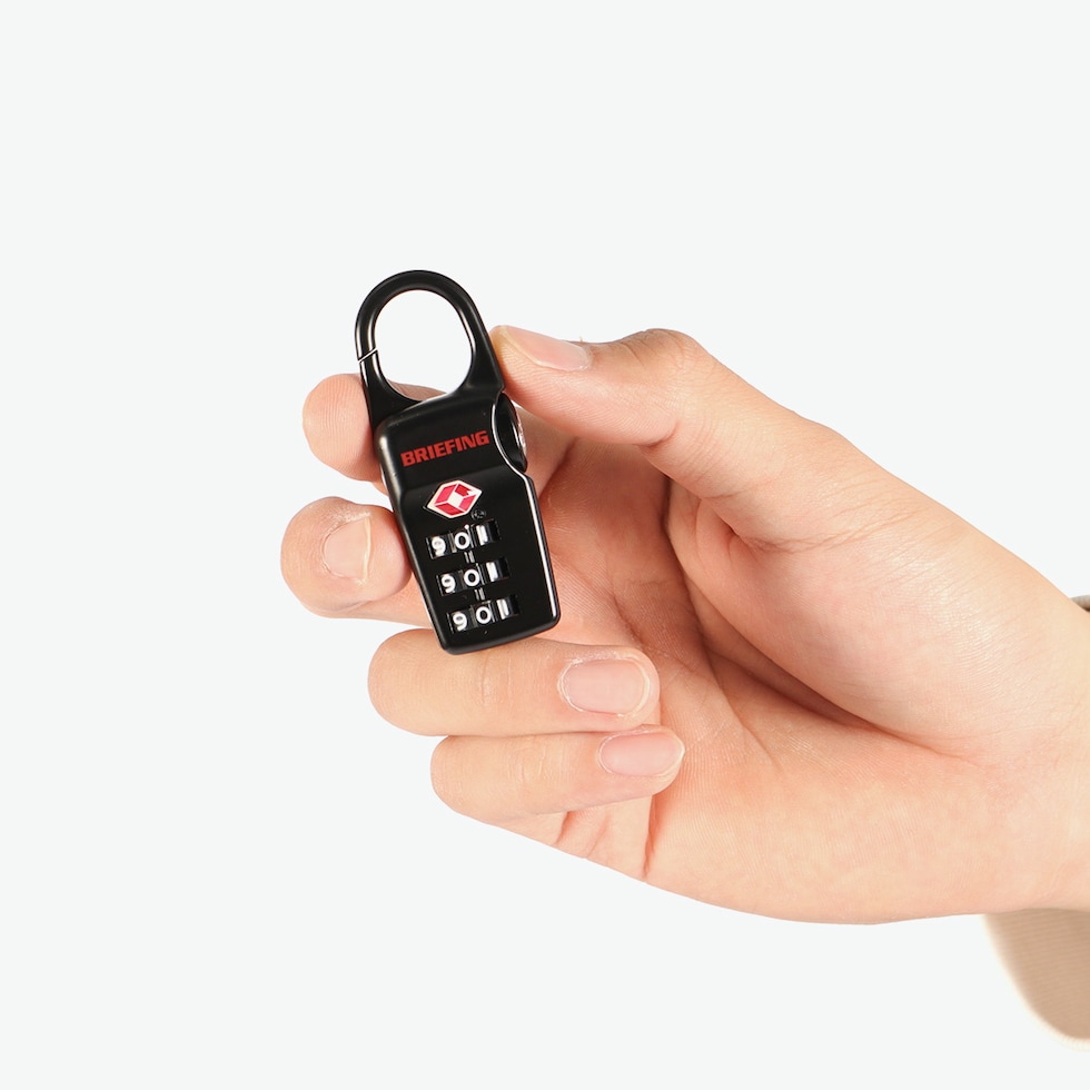 | 大切な荷物を守る ロゴ入りTSAロック ブラックの本体に赤色のブランドロゴが映える『BRIEFING』3桁ダイヤル式のTSAロック。トラベルシーンでスーツケースや貴重品の管理に活躍します。ダイヤル式のため鍵を持ち歩く必要がなく、鍵紛失の心配がありません。大切な荷物を守ってくれるシンプルで使いやすいアイテムとなっています。 |