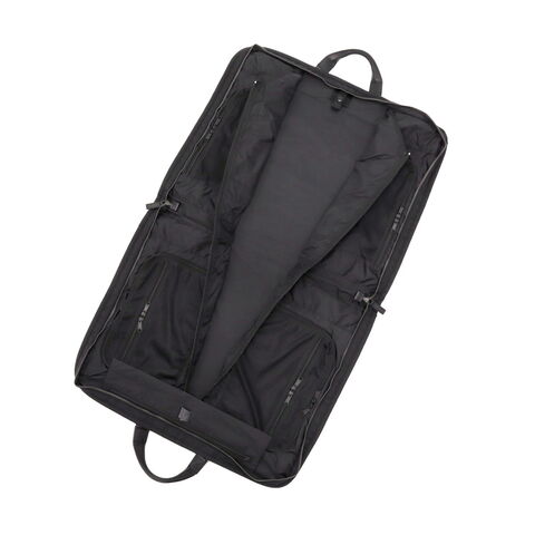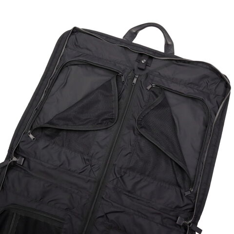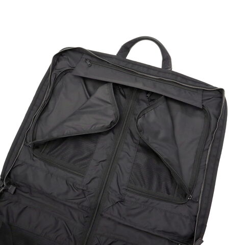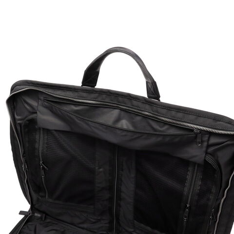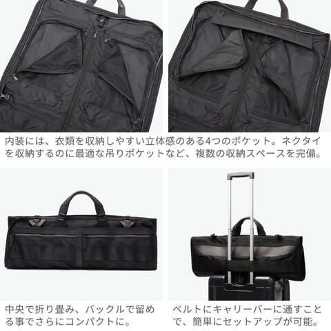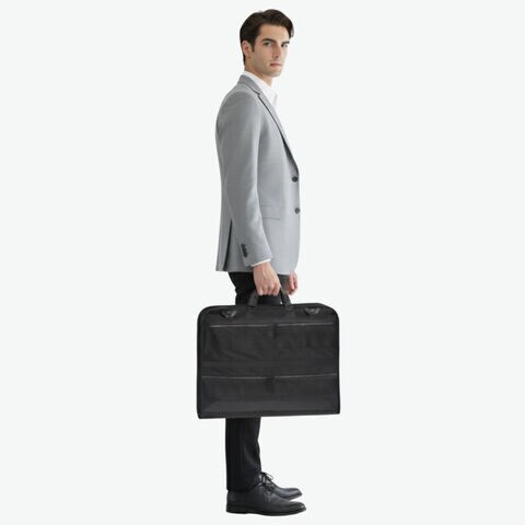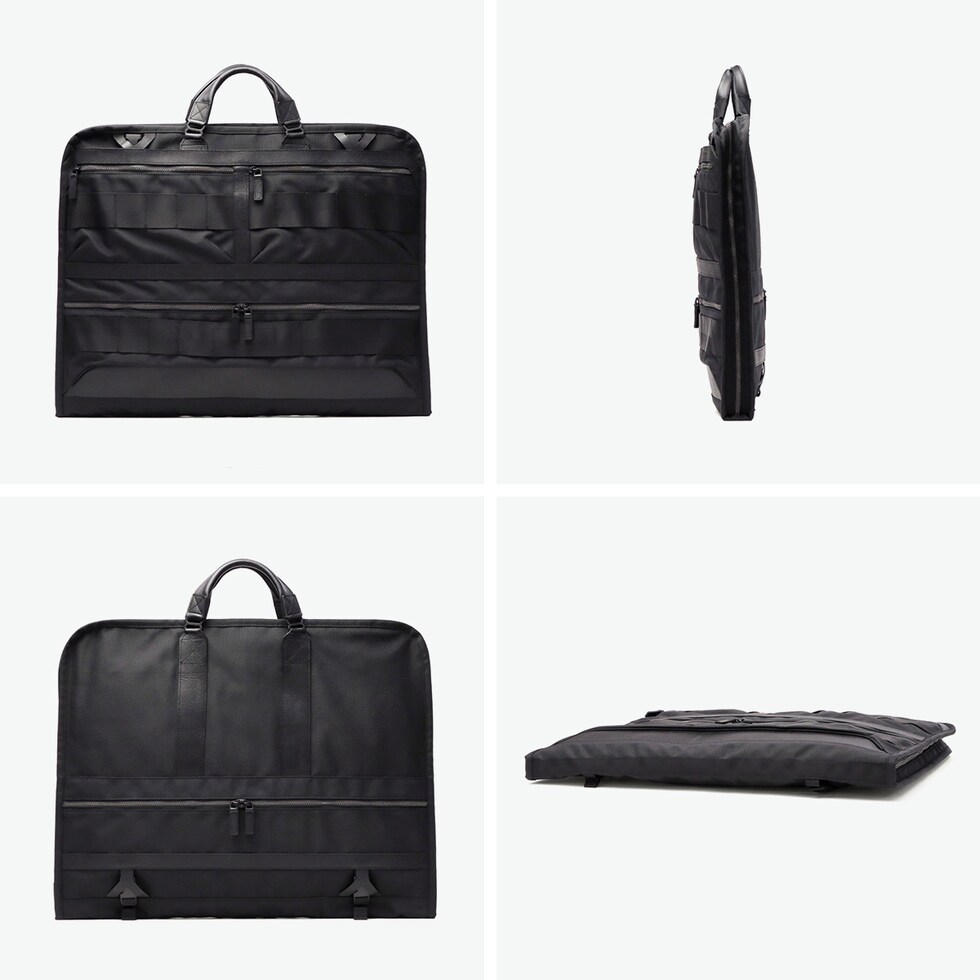 スーツをスマートに収納 ブランドの象徴であるレッドラインを使用せず、ワントーンでまとめたデザインがシックな顔立ちを表現する「FUSION COLLECITION」のガーメントケース。スーツをハンガーに掛けたまま収納できるハンガーベルトや、シャツ・ネクタイをすっきりと収められる複数の立体ポケットなど、実用性を追求した設計が魅力です。防水加工を施したレザーと上質な高強度ナイロンを組み合わせたルックスで、高級感のある外観に仕上がっています。 |
