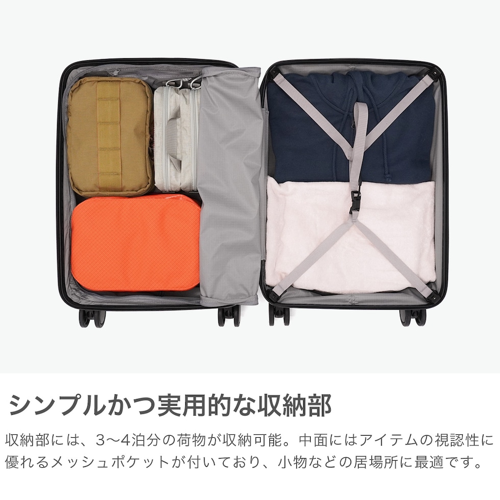 共鳴する旅の相棒 3~4泊の出張や旅行に最適な、機内持ち込みサイズのスーツケースです。ボディには、高い耐衝撃性・耐熱性を持つ素材を使用。マットな質感にすることで、傷や指紋などが目立ちにくい仕様に。仕切りやUSBポートなどの機能性を備え、BRIEFINGらしい無骨さと機能美が融合したモデルに仕上がりました。 |